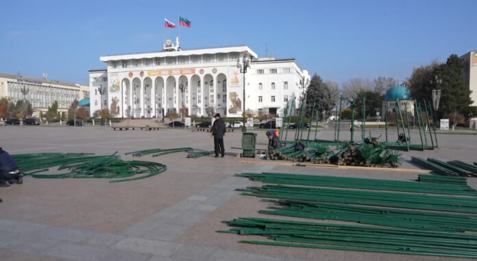 На центральной площади столицы Дагестана началась установка главной новогодней ёлки. Специалисты МБУ «Благоустройство г. Махачкалы» уже приступили к монтажу каркаса праздничного символа.