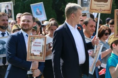 Председатель Правительства Дагестана Артем Здунов пришел на шествие с портретами прадеда и деда.