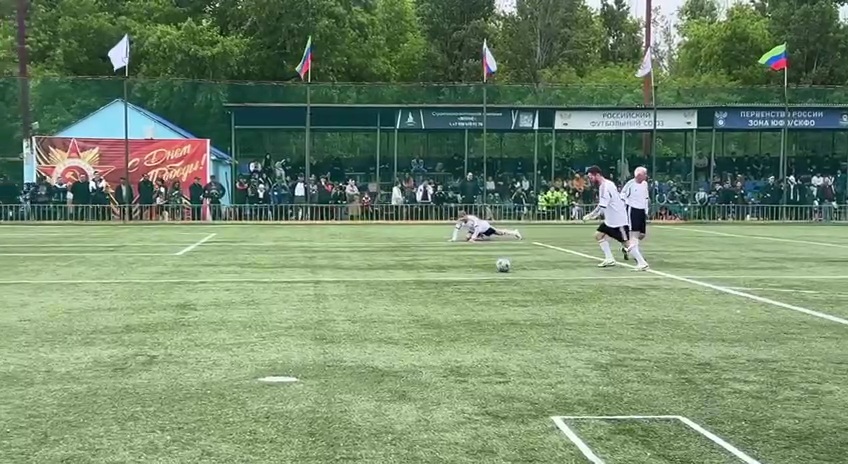После финала республиканских соревнований по футболу «Школьная футбольная лига» в Махачкале проходит товарищеский матч между сборной ветеранов СССР и России и сборной ветеранов Дагестана.