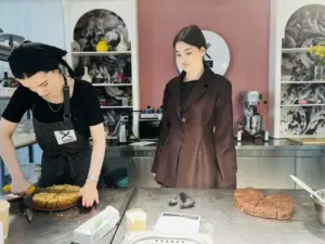 Практическую часть мастер-класса провели ведущие эксперты отрасли: шеф-кондитер, технолог с 25-летним стажем в кондитерской деятельности Зарема Айданова, совместно с кондитером профессионалом с 15-летним стажем работы и производственным стажем в кондитерской «Золотой Улей» Аидой Темеевой.
