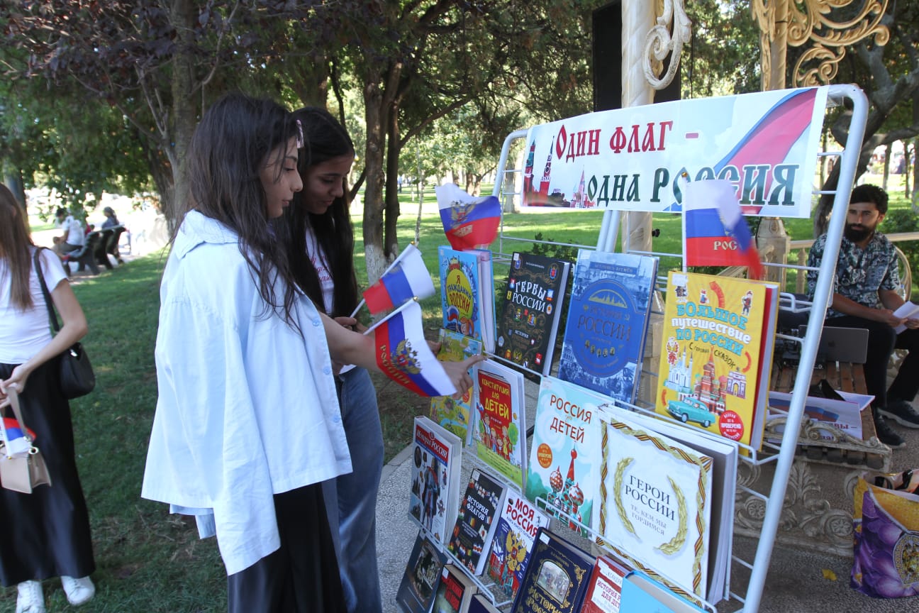 В парке им. Сулеймана Стальского прошло праздничное мероприятие патриотической направленности в честь дня Государственного флага России.