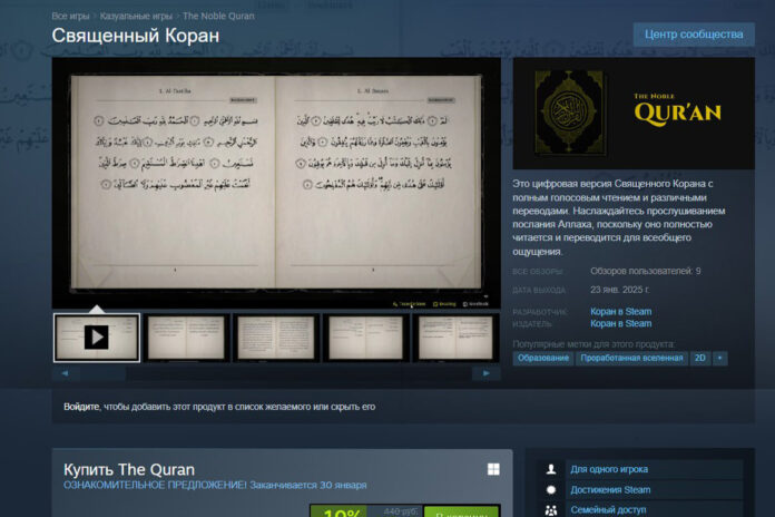 Издатель и разработчик под ником Quran on Steam за свою «стимовскую» версию Корана требует 396 рублей, а весит она 4 гигабайта.