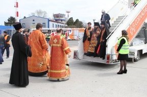 Святыню встречали епископ Махачкалинский и Грозненский Варлаам, заместитель председателя Правительства РД Рамазан Джафаров, представители духовенства епархии.