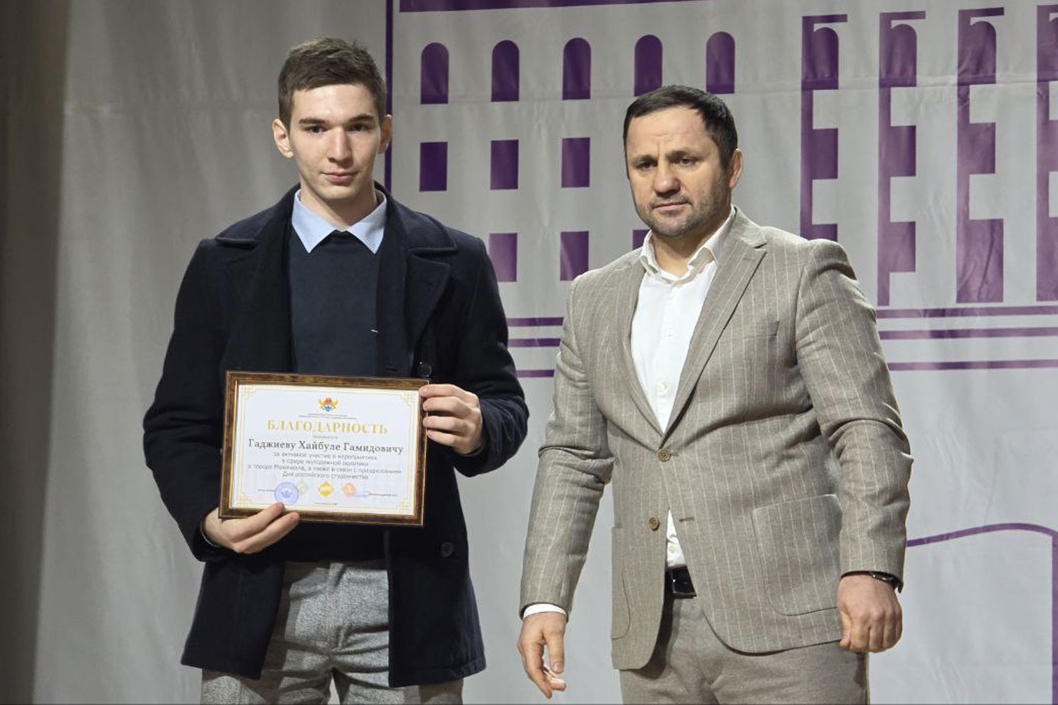 В ходе мероприятия состоялась церемония награждения студентов, отличившихся в учебе, науке, спорте, общественной и культурно-творческой деятельности. Выступая в качестве почетного гостя, Мирзагаджиев передал приветствие от имени мэра Махачкалы Джамбулата Салавова и вручил ведомственные награды отличившимся студентам, пожелав им успехов во всех начинаниях.