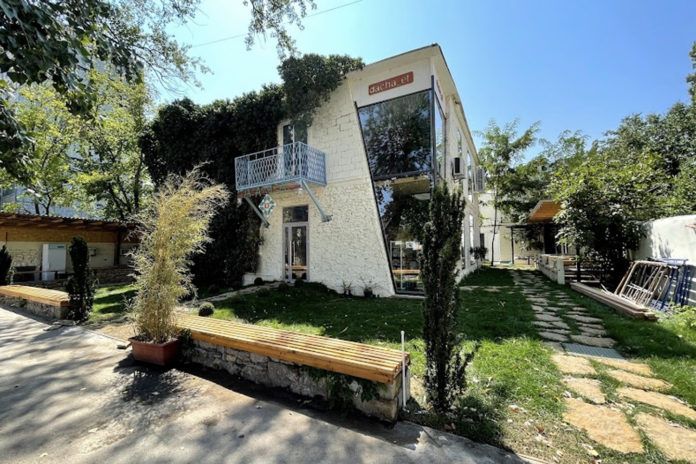 Официально. Передо мной кафе с самым уникальным экстерьером. Подобного в нашем городе просто не существует. Этот двухэтажный гигант снаружи напоминает незаконченный особняк успешного бизнесмена.