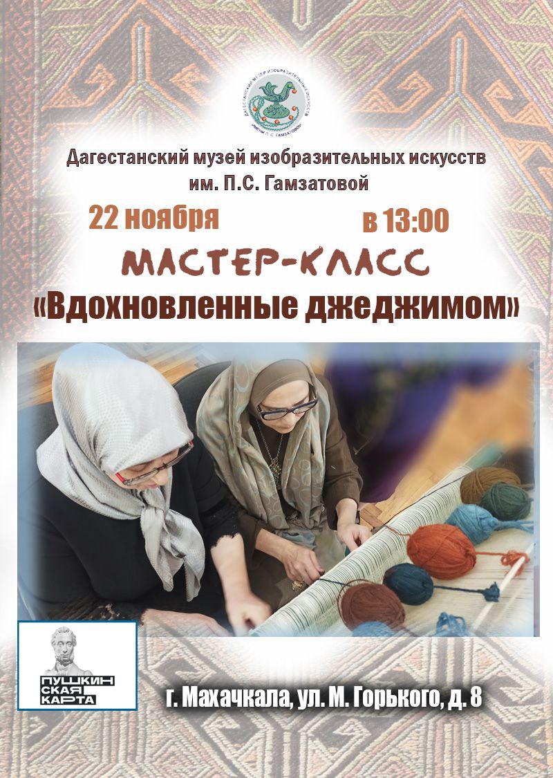 22 ноября в 13:00 Дагестанский музей изобразительных искусств им. П.С. Гамзатовой приглашает на мастер-класс по ковроткачеству «Вдохновленные джеджимом».