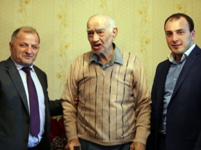 В дружеской обстановке А. Ибрагимов преподнес ветерану продуктовую корзину, поинтересовался бытовыми условиями, выслушал пожелания фронтовика.