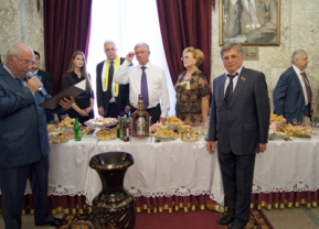 На приеме, организованном мэром г. Краснодара В.Л. Евлановым, был зачитан поздравительный адрес от Главы города Махачкалы С.Д. Амирова. Затем