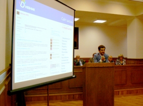 Затем выступил основной докладчик Александр Белоусов, который в доступной форме рассказал о проекте «Дневник.Ру». Рассказ сопровождался демонстрацией слайдов на интерактивной доске.