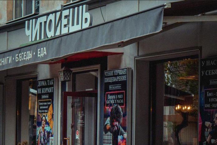 Объект данного обзора тесно связан с книгами. Он так и называется «Читайешь». На первый взгляд может показаться, что менеджмент, выбирая такую направленность, не может допускать грамматические ошибки в названии. Но при виде фасада все становится предельно ясно. Авторы просто дали волю воображению, поиграв со шрифтом. Получилось забавно.