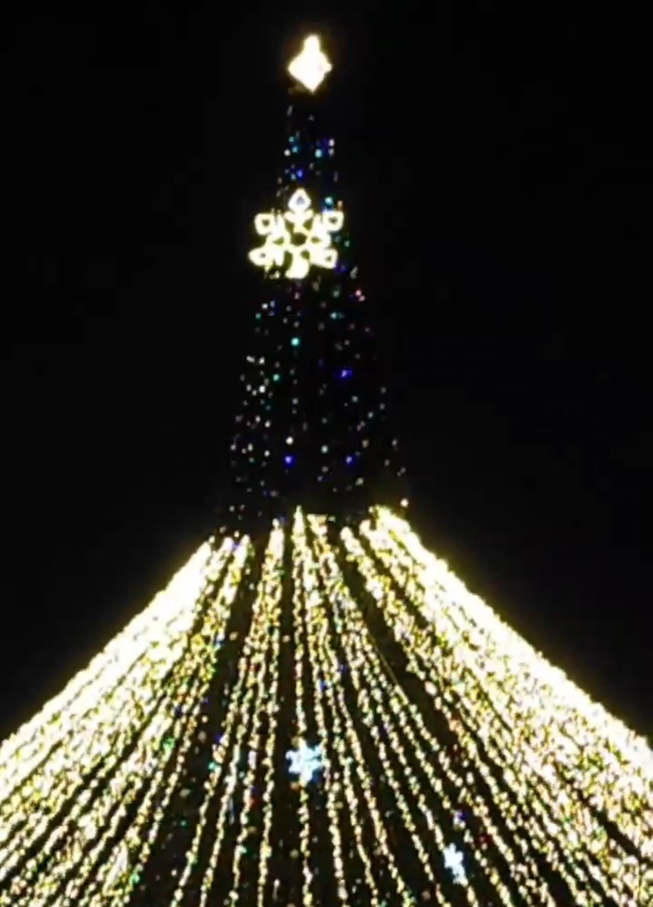 Затем ёлка была украшена яркими игрушками, а главным украшением стала иллюминация.