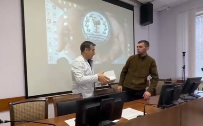 Главный врач городской клинической больницы Махачкалы, депутат Народного собрания РД Хаджимурад Малаев передал квадрокоптер дагестанскому военнослужащему, который после короткого отпуска возвращается в зону проведения специальной военной операции.