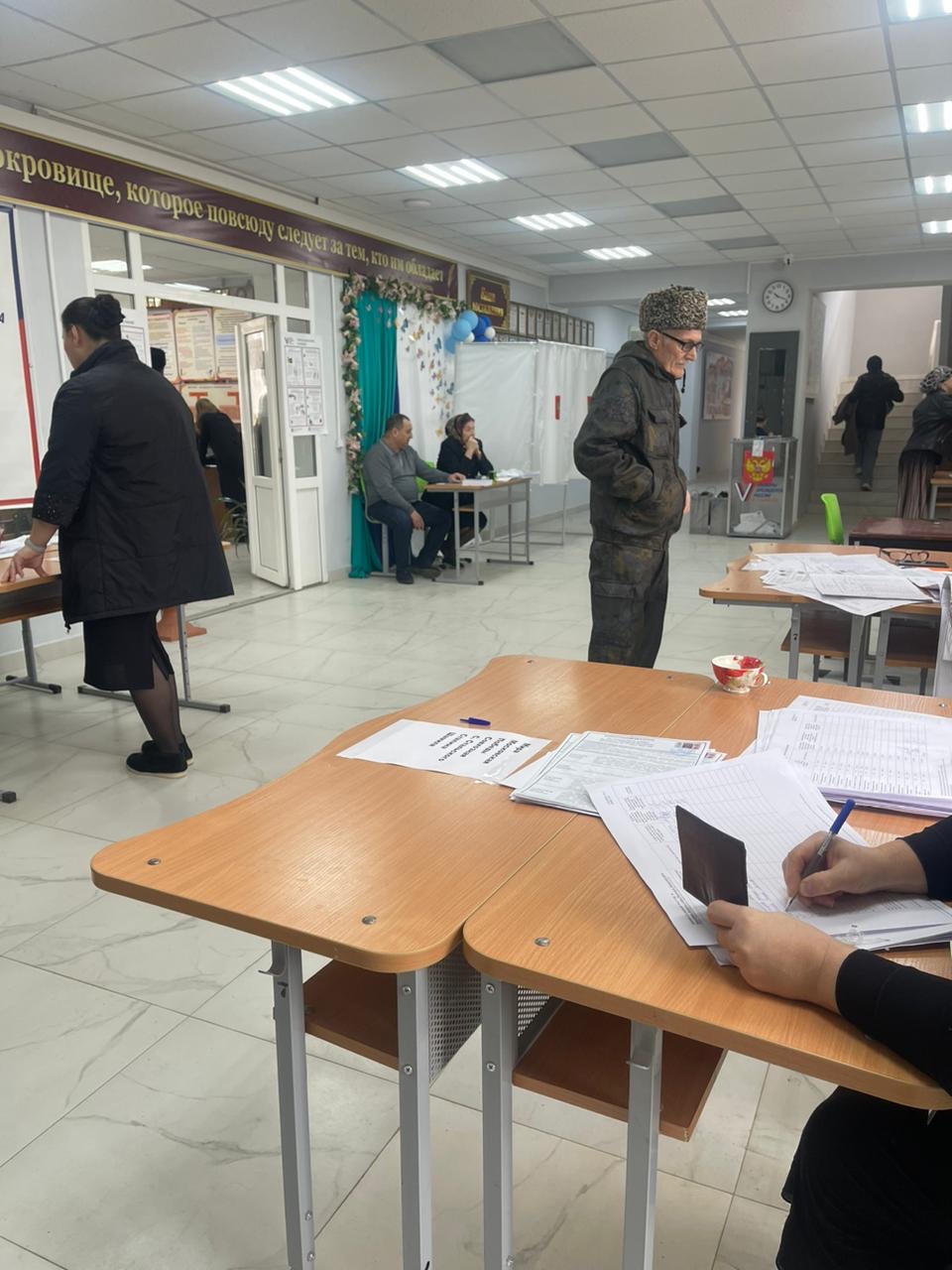 Так на участке номер 1028 в поселке Шамхал-Термен находятся четыре общественных наблюдателя-три от Общественной палаты города и один от Администрации.
