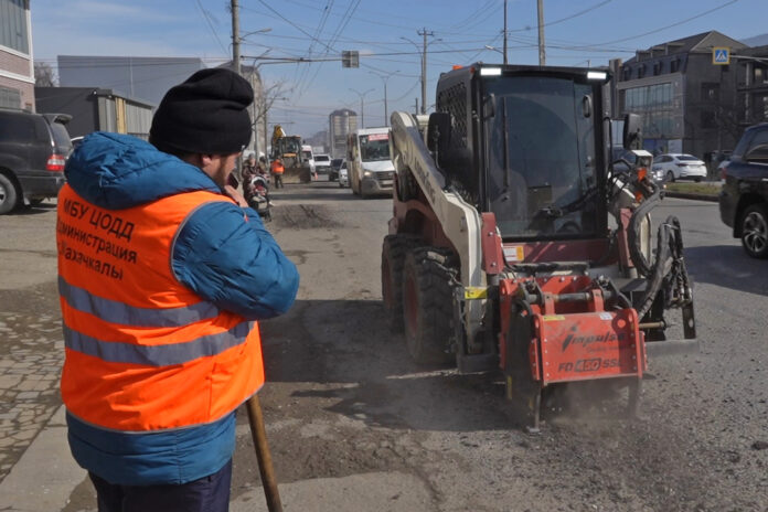 По распоряжению главы города Джамбулата Салавова к работам были привлечены 10 специализированных бригад, работающих в усиленном режиме. Ежедневно они выходят на улицы, чтобы ликвидировать повреждения дорожного полотна. Для повышения эффективности дорожные службы задействовали современную технику, включая мини-погрузчик с фрезой. Это оборудование позволяет в несколько раз ускорить подготовку поврежденных участков и повысить качество ремонта. Работы ведутся комплексно: очистка и фрезерование поврежденных зон; выравнивание основания; укладка асфальтобетонной смеси; оперативный вывоз строительного мусора.