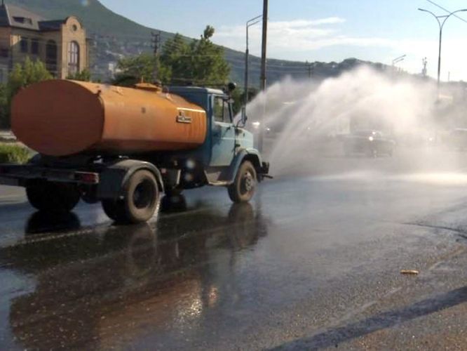 Для того чтобы зной легче переносился автомобилистами и пешеходами, на улично-дорожной сети дагестанской столицы стала чаще работать крупногабаритная спецтехника МБУ «Махачкала-1», так как дорожное полотно требует дополнительного увлажнения во избежание деформации под длительным воздействием солнечных лучей и при большой транспортной нагрузке.