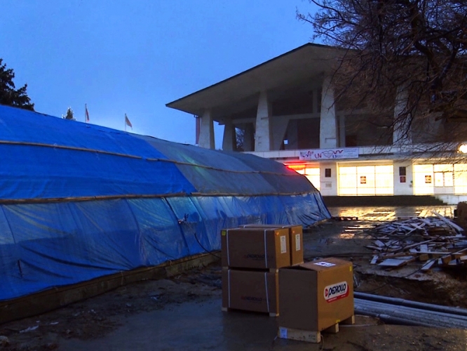 Новый бассейн с овальными краями общей площадью 330 кв. м, его объем составляет 150 куб. м. Бассейн обрамлен гранитным камнем, а чаша украшена мозаикой. По центру чаши располагается фонтанная композиция из нескольких струй.