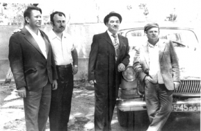 На снимках: слева направо: Морозов Д.А. – главный энергетик, Сардаров Магомед – прораб, Иоселиани Г.Я. – начальник «Тульского поезда», Волков Виктор – водитель. 9 Мая 1973 года. Палаточный городок строителей. 1970 год.