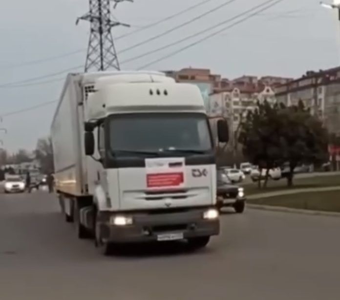 Фуры доставят эвакуированным в Россию 30 тонн продуктов первой необходимости, 20 тонн бутилированной воды, более 3 тыс. комплектов взрослой и детской одежды и обуви.