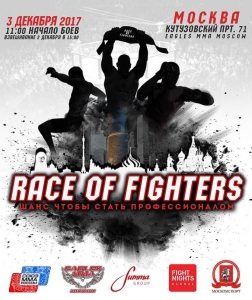 Первые бои состоятся уже 3 декабря в Москве. «Открытый чемпионат Race Of Fighters подразумевает открытую селекцию бойцов с последующим выявлением сильнейших, тех, кто будет достоин пояса чемпиона нашей организации!» – сообщает клуб Eagles MMA Moscow на своих страницах в социальных сетях.