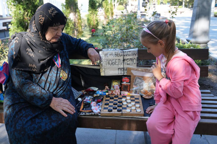 В городском парке Махачкалы появилось необычное развлечение – турнир по шашкам со скромной на вид пожилой женщиной в даргинском платье и платке. Ее зовут Хадижат Омарова. В мае ей исполнилось 89 лет, но глаза все так же блестят, а руки уверенно передвигают шашки. На груди у бабушки сверкают медали – она получила их уже в почтенном возрасте на городских соревнованиях по шашкам. И даже опытным игрокам редко удается обыграть Хадижат.