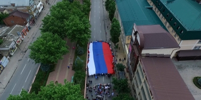 На площади им. Ленина минмолодежи Дагестана организовывает уже ставшее традицией разворачивание российского триколора. Разворачивать, а затем и нести самый большой флаг России размером 15х30 метров и площадью 450 кв. м было доверено студентам, школьникам, членам детских и молодежных общественных объединений республики.