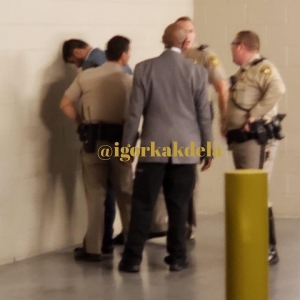 На фотографии, распространенной в сети, видно, как Магомедов стоит лицом к стене, окруженный тремя представителями правоохранительных органов Лос-Анджелеса.