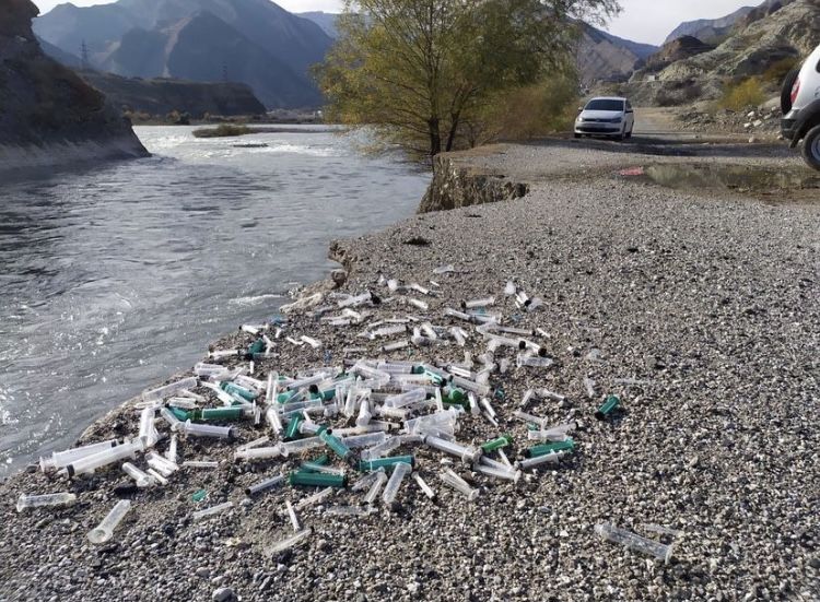 Ранее Каспийский природоохранный центр опубликовал видео, снятые жителем села Чалда Гергебильского района, на которых видно скопление использованных шприцов и систем для внутривенных инъекций в реке Аварское койсу.