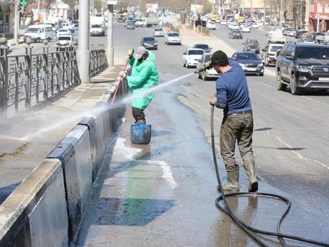 10 апреля сотрудники городских служб провели санитарную очистку моста: специальными моющими средствами были вымыты ограждения, бордюры, проезжая и пешеходная части.