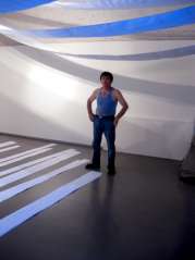«Идею он развил, — продолжает свою мысль Кажлаев, — вода у него, как вечность, бесконечность… На видео он из подручных материалов попытался собрать игру, музыку, камень, дерево, веревки». «Из всего, что в данный момент окажется под рукой, можно собрать композицию», — вспоминаю я слова Супьянова из интервью, данного нашей газете несколькими месяцами раньше. На видеопроекции у Апанди есть фотографии и живая картина природы, слышен шум воды, удары палок о камни, так и хочется опустить руки в воду, окунуться в прохладную свежесть мысли… А белый цвет, которого кругом очень много, содержит в себе все цвета, все оттенки, поэтому нельзя говорить об отказе художника от цвета.