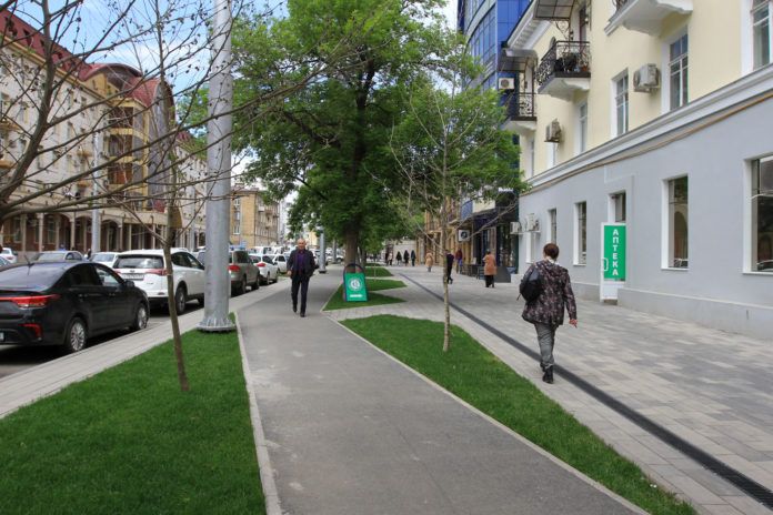 – Мы уже высадили газон, посадили деревья. Все, что касается зеленых насаждений, сделано. На участке реконструкции улиц Коркмасова, Радищева, Абубакарова и Кадырова было высажено более 200 крупномерных деревьев. В ближайшее время начнется доставка новых скамеек, урн и других малых архитектурных форм, после установки которых участок реконструкции окончательно приобретет черты общественного пространства. Были вопросы по газону, который при пересадке получил шоковый эффект и пожелтел. Все такие участки подрядчик полностью заменил. Освещение полностью смонтировано и запущено, все вопросы сняты. Что касается всех предыдущих замечаний от горожан и лично от мэра города: по плитке, подрезке, провалам, люкам на сегодня все исправлено. Установили полностью плитку на участке между Университетской площадью и переулком Умаханова. Асфальт на велодорожках перестелили. На сегодня осталось установить резиновое покрытие на велодорожках, обрамление, которое белым контуром будет выделять эти дорожки, – отметил Закарьяев в разговоре с нами.