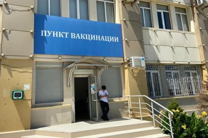 Один из мобильных пунктов вакцинации от коронавируса продолжает функционировать в центре Махачкалы на площади им. Ленина, в здании Дагестанского государственного медицинского университета.