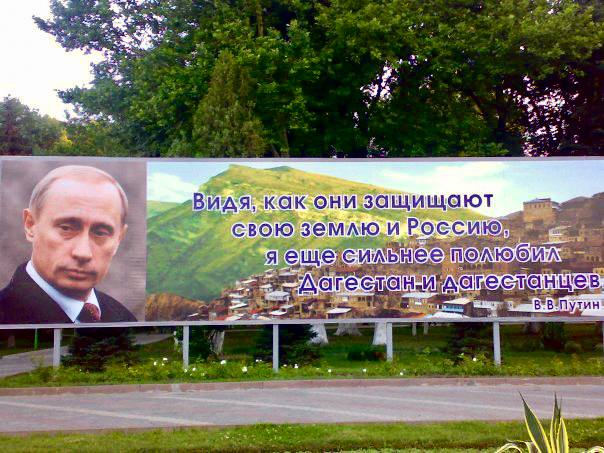 На центральной площади Махачкалы вновь появится баннер со словами президента России Владимира Путина о дагестанцах: «Видя, как они защищают свою землю и Россию, я еще сильнее полюбил Дагестан и дагестанцев». Эта цитата связана с событиями 1999 года, когда Дагестан подвергся нападению бандформирований.