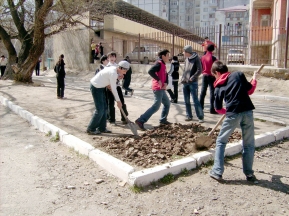 — И не удивительно, наши учителя проводили поквартирный обход, — говорит директор гимназии Зухра Дибирова, — мы вручали родителям приглашения, просили прийти на субботник, и вот они откликнулись: вышли около ста человек. В результате мы смогли убрать не только двор школы, но и прилегающие территории. По мнению Зухры Яхьяевны, к таким мероприятиям надо привлекать не только родителей — жителей микрорайона, но и организации, расположенные на его территории.