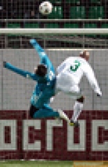 Настрой футболистов из Махачкалы был виден ещё при исполнении гимна. А когда прозвучал стартовый свисток, мяч почти сразу оказался в сетке ворот Юрия Жевнова. Нападающий молодёжной сборной Украины Мирослав Славов протащил мяч по центру и выдал хорошую передачу правее, откуда последовал прострел, после которого махачкалинцы отправили мяч в ворота питерцев, но боковой арбитр зафиксировал сомнительное положение "вне игры". Несмотря на качественное искусственное поле, футболисты в стартовый отрезок поединка испытывали небольшой дискомфорт. Всё объяснялось дождём, который по ходу матча превратился в мокрый снег. Поле было мокрым, скользким и травмоопасным. Так, уже на 7-й минуте пострадал бразильский защитник «Анжи» Жоао Карлос. Пока футболист получал помощь врачей, зенитовцы заработали пенальти. К точке подошёл Саболч Хусти и уверенным ударом в правый от себя угол вывел "Зенит" вперёд. После пропущенного мяча в составе южан произошла замена. Место травмированного защитника Жоао Карлоса занял Шамиль Лахиялов. Понятно, что экс-капитан "Терека" вышел играть не в обороне. Лахиялов действовал в средней линии, а в центральную ось защиты отошёл опорник Михаил Бакаев. На 17-й минуте у "Зенита" получилась отличная комбинация. Константин Зырянов классной передачей нашёл на линии штрафной соперника Игоря Денисова, который скрытым пасом вывел на ударную позицию Александра Анюкова, тот убежал от Роберто Карлоса и мощно выстрелил в ближний угол, однако Нукри Ревишвили справился. Вообще же футболисты "Анжи" в первой половине тайма больше владели мячом. В результате вспышки активности подопечные Гаджи Гаджиева сравняли счёт. Всё началось с Роберто Карлоса, который технично принял мяч грудью и помчался вперёд, но бразильца встретил Саболч Хусти, который нарушил правила. Не прошло и десяти секунд, как Роман Широков не по правилам сбил Алексея Иванова. И махачкалинцы сравняли счёт после розыгрыша "стандарта". При этом в комбинации не участвовал Роберто Карлос. Зато капитан махачкалинцев Расим Тагирбеков нанёс сильнейший дальний удар, Юрий Жевнов отбил мяч перед собой, а Камиль Агаларов первым успел на добивание, мощным ударом отправив мяч точно в дальний угол.