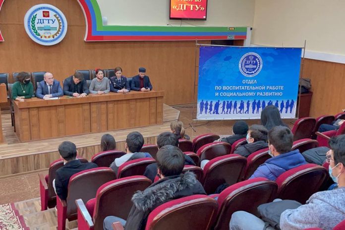 9 февраля в стенах Дагестанского государственного технического университета состоялась встреча депутатов городского Собрания Хабиба Абдулаева и Адели Татарко со студентами вуза по вопросам профилактики экстремизма, терроризма и наркомании среди молодежи.