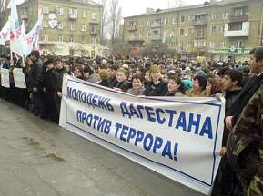 В результате этих террористических актов погибли ни в чем не повинные люди. На площади собрались более тысячи человек. Среди них студенты, преподаватели высших учебных заведений столицы, представители молодежных и ветеранских организаций. Молодые люди держали в руках плакаты с надписями: «Мы хотим мира», «Нет терроризму!».