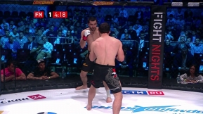 Наш земляк Аюб Гимбатов (3-0) – чемпион Европы по панкратиону, начал выступать на турнирах Fight Nights в июне этого года. В своем последнем поединке на «Битве 19» в первом раунде он одержал победу болевым приемом на руку над Алексеем Масловым.