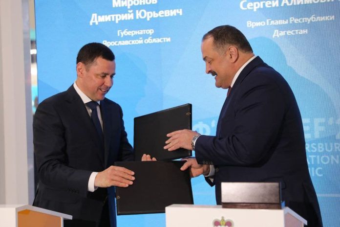 Во второй день форума Глава Дагестана и губернатор Ярославской области Дмитрий Миронов скрепили подписями соглашение о межрегиональном сотрудничестве между двумя субъектами. Оно предусматривает взаимодействие в торгово-экономической, научно-технической и культурной сферах в период с 2021 по 2025 год.