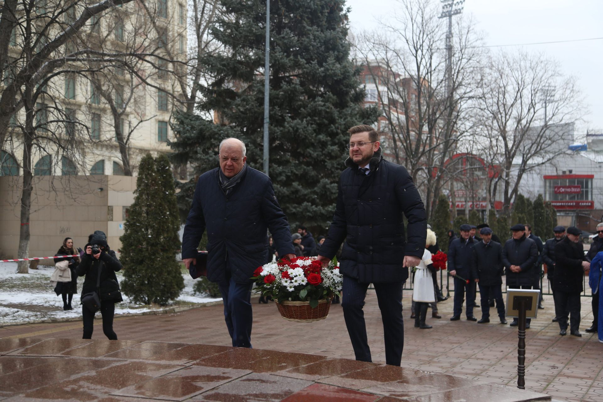 Торжественное мероприятие в Махачкале продолжилось возложением цветов к памятнику Борцам революции в одноименном сквере.