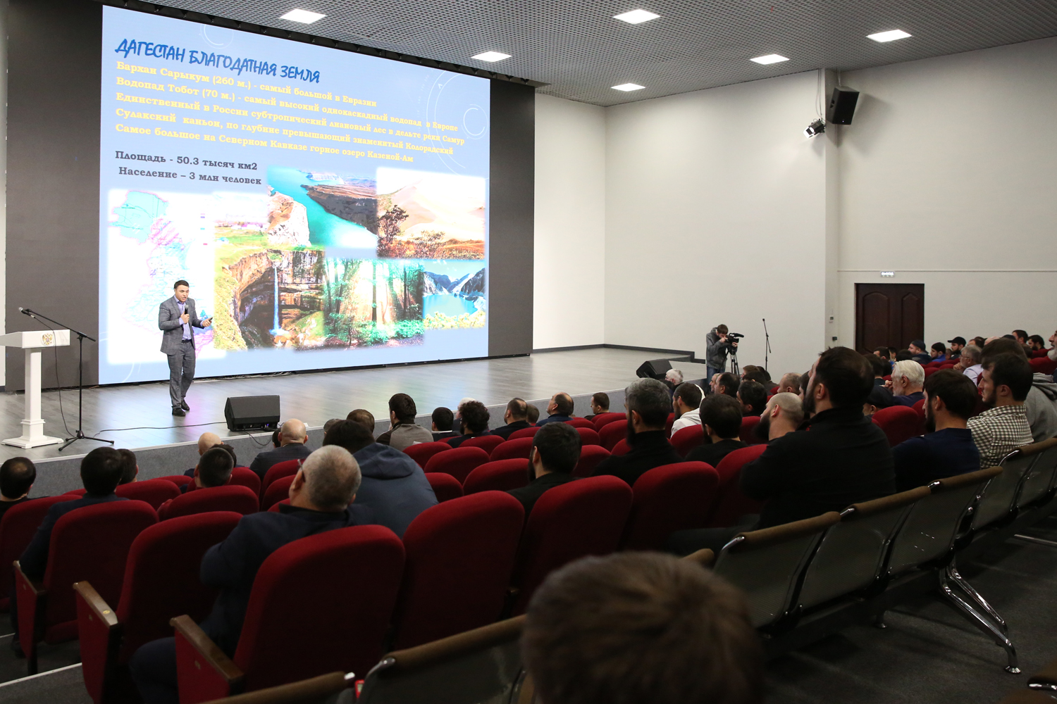 На слайдах он наглядно представил людей, которые добились успехов в спорте либо совершили геройские поступки. По его мнению, героями своего времени являются не только именитые спортсмены и публичные личности, но и те, кто своим праведным образом жизни снискал уважение в своем окружении.