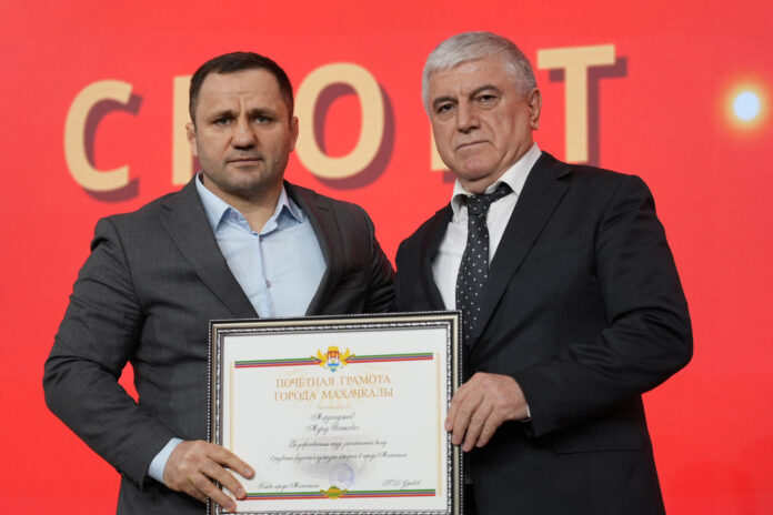 В ходе церемонии чествования спортсменов, молодежи и представителей туристической сферы «Итоги года –2024» мэр Махачкалы Юсуп Умавов получил диплом от Книги рекордов России за самое массовое синхронное выполнение упражнения «приседание».