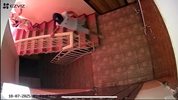 Поступок детей частично попал в объектив камеры, установленной в подъезде дома на ул. А.Алиева. Один из мальчиков дожидается второго на лестнице, затем оба шумно сбегают вниз к выходу и закрывают за собой дверь. Следом бежит обьятая пламенем кошка, которая, не найдя выхода, начинает метаться по подъезду.