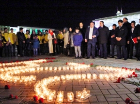 «Это большая трагедия – 224 жизни потеряла страна в одночасье. Там были люди, которые строили планы на жизнь, которые хотели быть полезными для своей семьи и страны, но трагическая случайность оборвала их жизни. Пусть земля им будет пухом. Все попросим в душе Господа Бога, чтобы он облегчил страдания тех, кто потерял близких. У нас есть возможность задуматься над тем, что мы еще можем успеть сделать сегодня, не откладывая на завтра. Дай Аллах, чтобы это была последняя трагедия в нашей стране. Благодарю всех, кто принял участие в акции», – сказал в своем выступлении градоначальник.