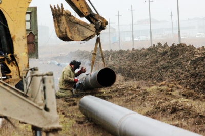 Рабочие прокладывают траншеи глубиной 1,2 м, и на сегодняшний день раскопано 400. Кроме того ведутся работы по монтажу трубопровода, уже смонтировано 380 м труб. Проведены подготовительные работы для врезки трубопровода к водоводу. На объект были завезены трубы диаметром 425 мм в количестве 440п/м и необходимая строительная техника.