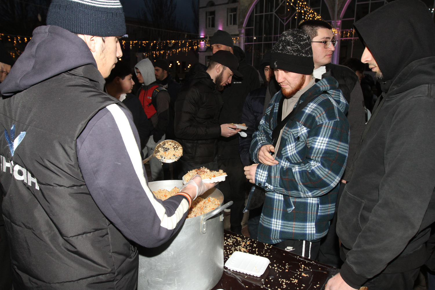 На площади у Центральной Джума-мечети установлен большой шатер Рамадана, рассчитанный одновременно на 500 человек. Здесь ежедневно проходят коллективные ифтары. С первых дней священного месяца в шатре проводились ифтары за личный счет руководства республики: Сергея Меликова, Абдулмуслима Абдулмуслимова, Заура Аскандерова, а также главы города Джамбулата Салавова и других. Учитывая, что 2026 год Президентом Владимиром Путиным объявлен годом Единства народов России, эти мероприятия были названы «ифтарами единства». Ведь мечеть – это место, где объединяются все, невзирая на национальную принадлежность и происхождение. Здесь в одном ряду перед Аллахом встают в молитве и мэр города, и обычный пенсионер. За месяц поста организаторы накормили здесь более 10 тысяч человек, включая студентов, многодетные семьи и гостей города. Такие пункты можно встретить практически возле каждой мечети города. И это пошагово приближает всех к празднику – Ураза-байрам.