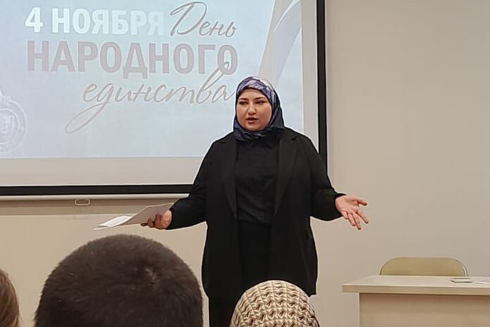Спикером мероприятия «Многообразие в единстве» выступила председатель комиссии по депутатской этике и вопросам мандата, зампредседателя Молодежного парламента при МГС Габибат Кадирова.