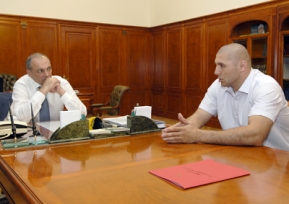 Прочитал в СМИ, что есть возможность проведения твоего боя в том числе и в Дагестане, а сейчас стоит цель проведения боя в рамках чемпионского поединка, который проведет в Москве Кличко. Что может сделать для этого республика, мы обязательно по возможности сделаем. Мы хотим, чтобы в список славных имен чемпионов мира – наш земляк Султан Ибрагимов был чемпионом мира в супертяжелой категории – и ты вписал свое, прославляя этим и Дагестан, и нашу страну, Россию», – обратился Президент РД к боксеру и поинтересовался его планами на будущее.
