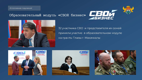 32 участника СВО и члена их семей прошли обучение в рамках образовательного модуля «СВОй бизнес». Программа реализована на гранты главы города. Интенсивный пятидневный курс завершился защитой проектов, лучшие из которых были отмечены денежными премиями.