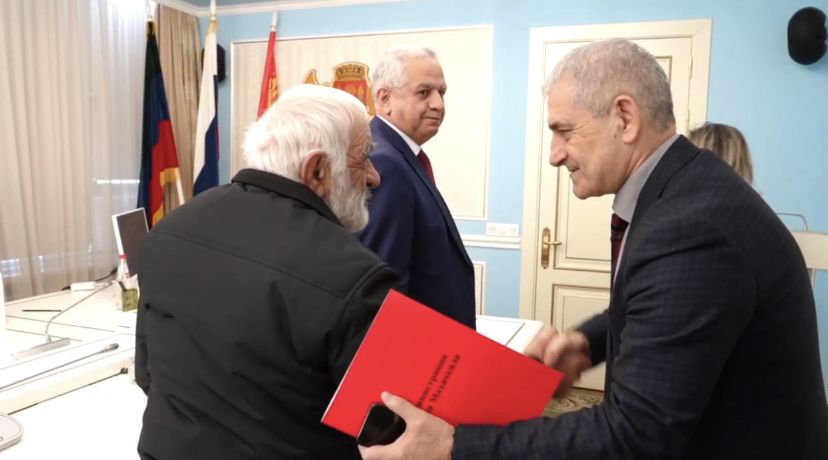Исполняющий обязанности мэра Махачкалы провёл встречу с отцом военнослужащего Арсена Гусейнова – Багаудином Магомедовичем.