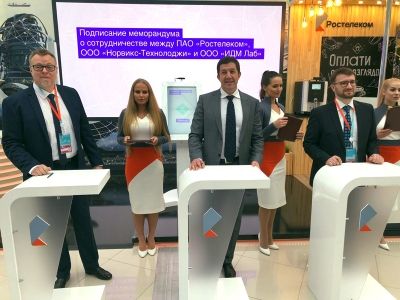 Компании «Ростелеком», «Норвикс-технолоджи» и «ИДМ Лаб» договорились о расширении отраслей применения Единой биометрической системы. Соответствующее трехстороннее соглашение в ходе Форума финансовых технологий Finopolis-2019 подписали президент «Ростелекома» Михаил Осеевский, генеральный директор «Норвикс-технолоджи» Дмитрий Якушин и генеральный директор «ИДМ Лаб» Александр Богаткин.